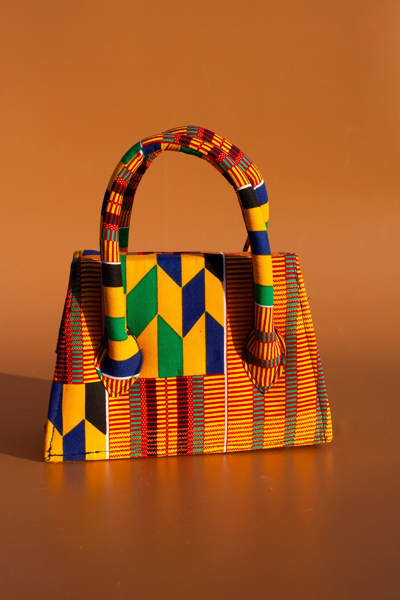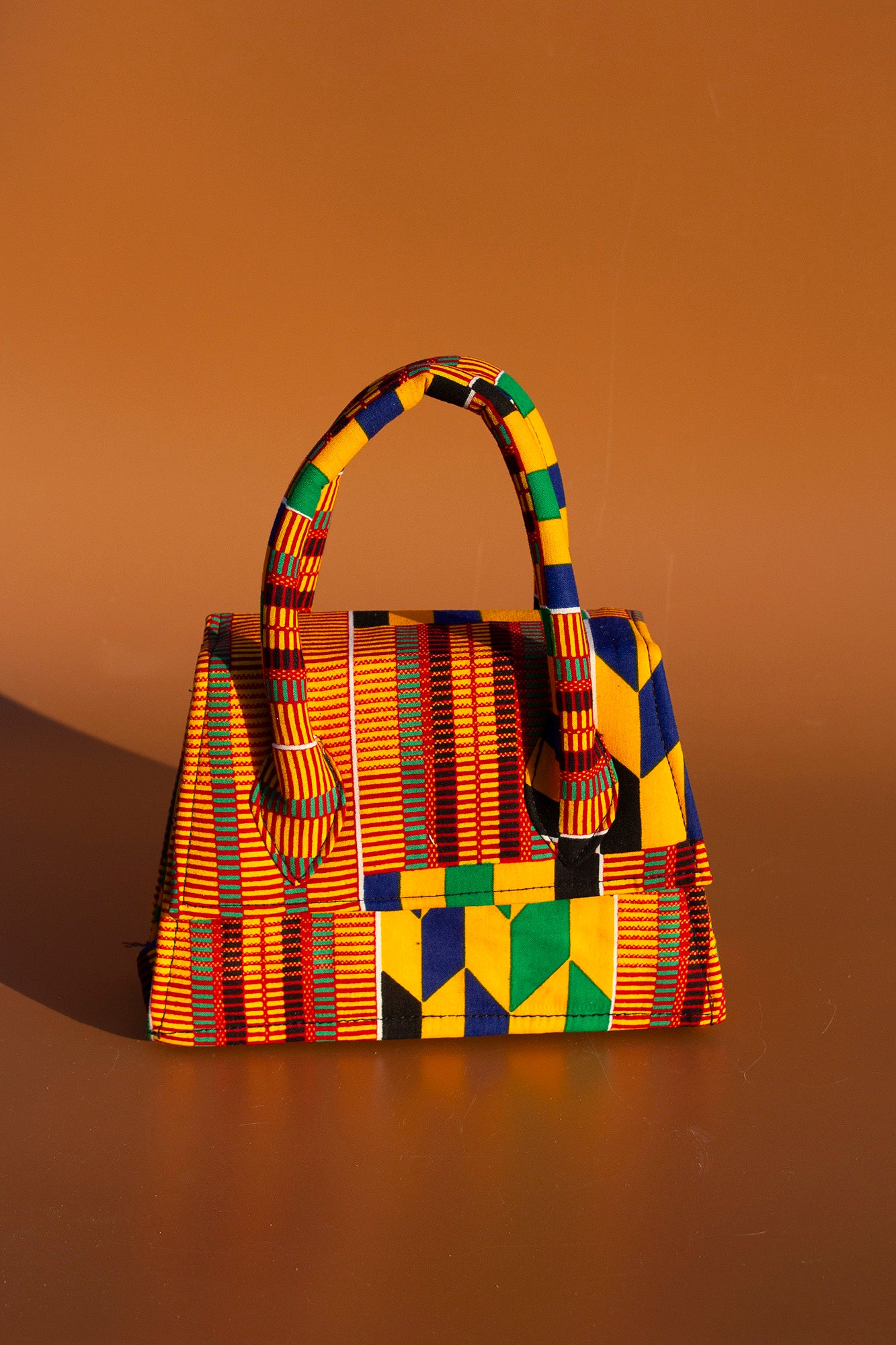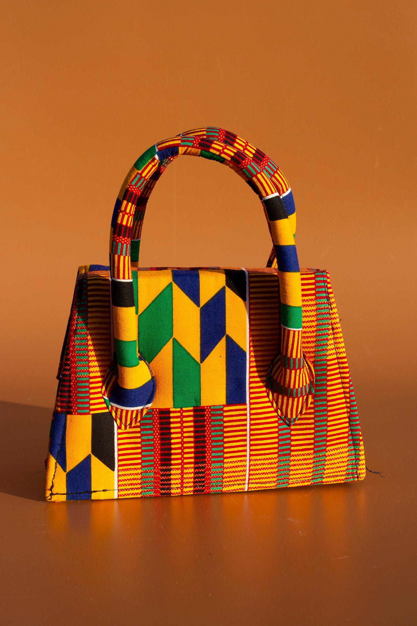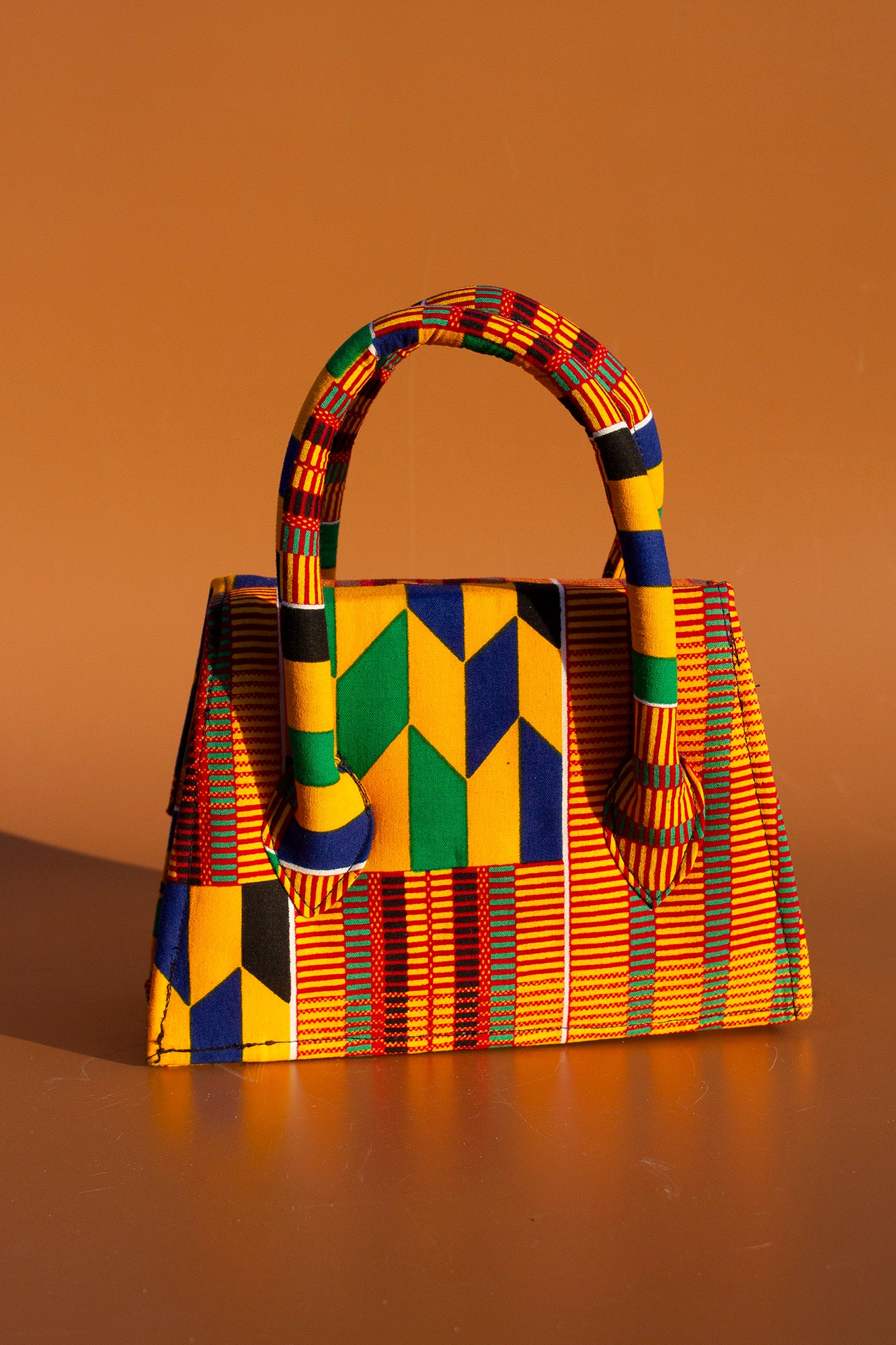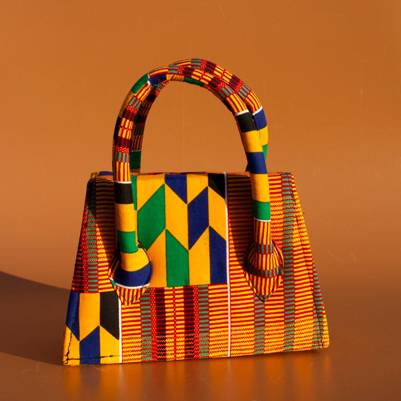 Hand crafted mini tote bag made from sustainably selected wax print in a stunning Kente African print pattern. This mini tote is a perfect fusion of tradition prints and contemporary style and inspired by the rich cultural heritage of Ghana.